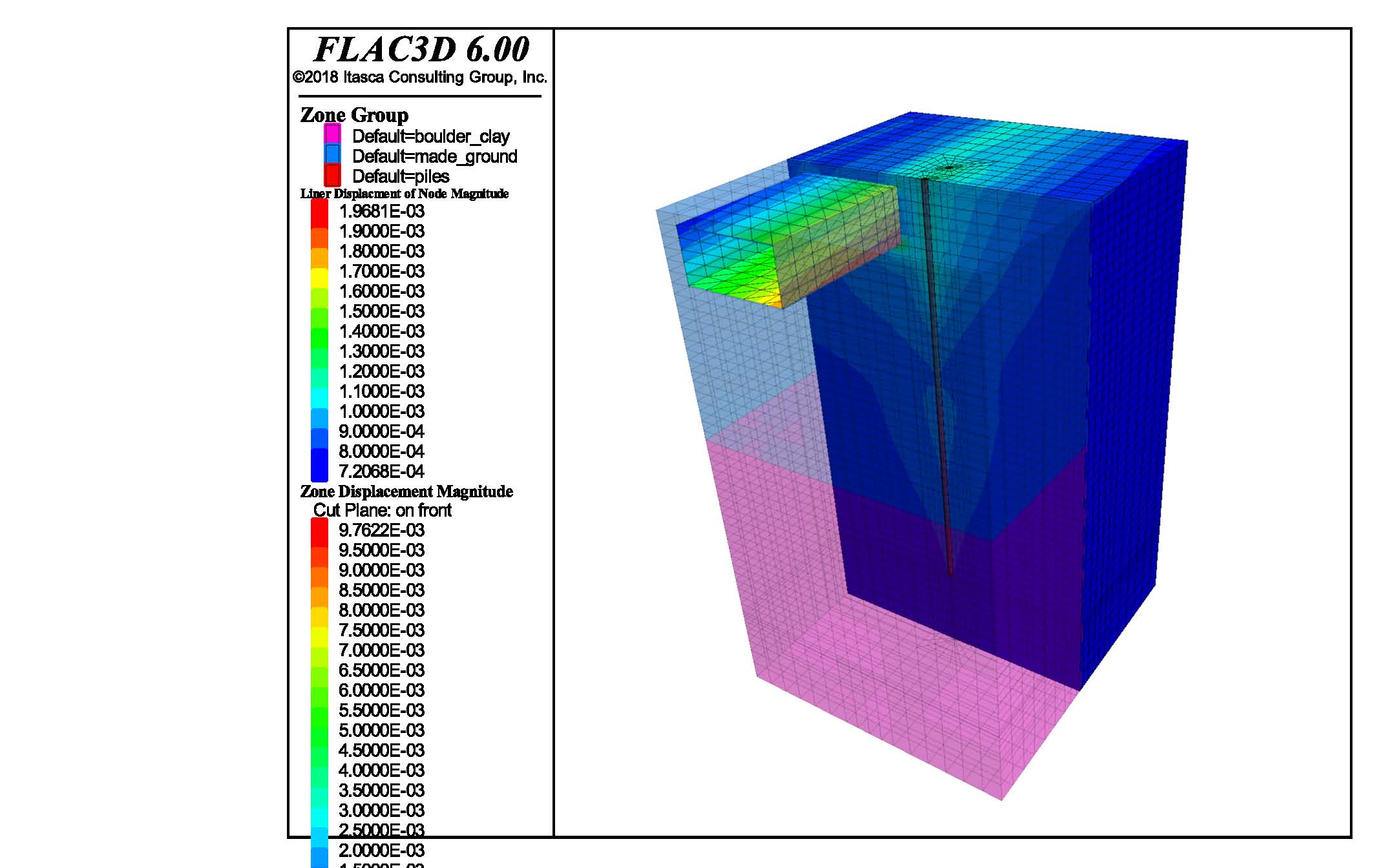 Recently, we have increasingly been instructed to carry out analyses for other consultants, particularly using our sophisticated geotechnical software, Flac2D and Flac3D although we do also carry out work with software written in house. These software tools are capable of dealing with non linear materials and are especially suitable for undertaking studies involving interaction between structures and soils, often leading to significant overall economy.