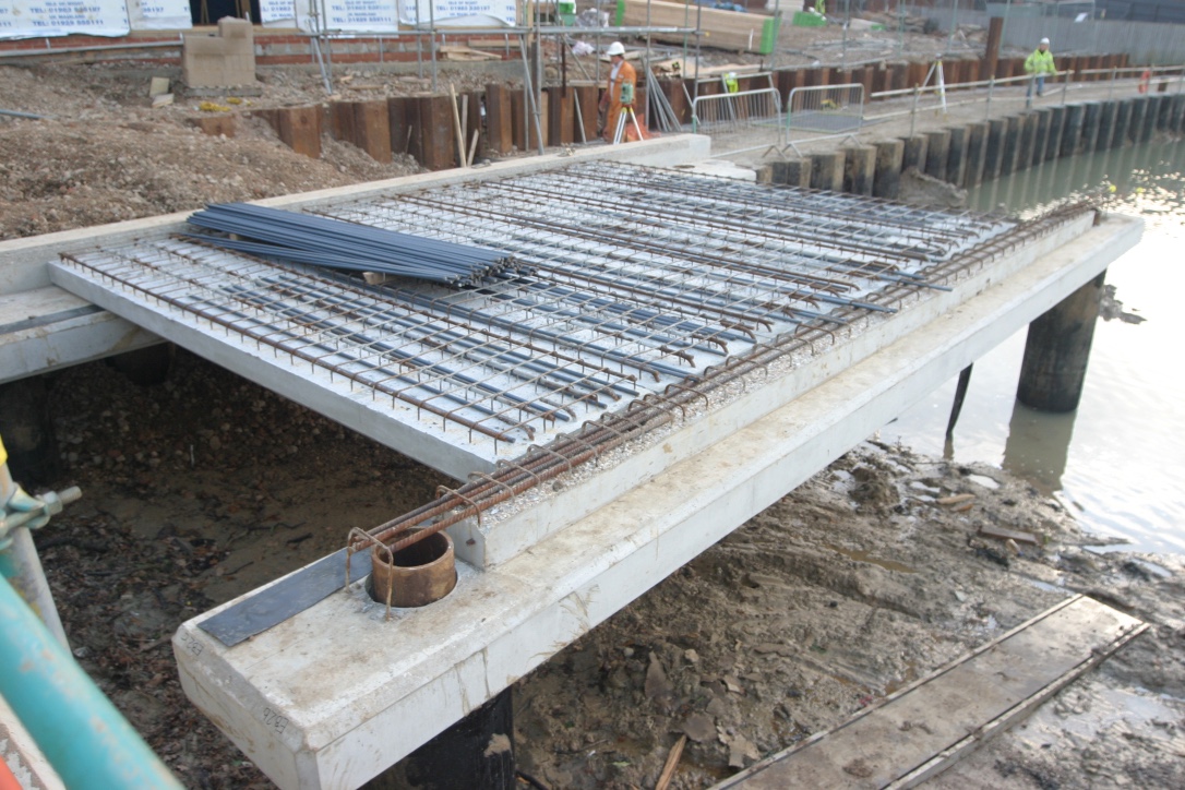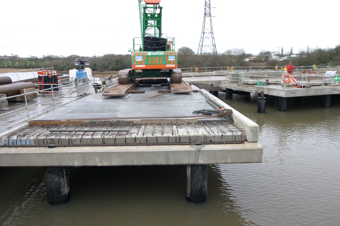The sheet piling was carried out using an innovative double wall system to provide stability in the unstable ground. The contract was carried out to a very tight schedule of 9 months from initial go ahead to final completion. In order to meet the programme the design had to proceed in tandem with the construction. The cost was controlled by the use of a target cost contract.