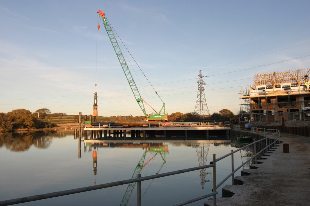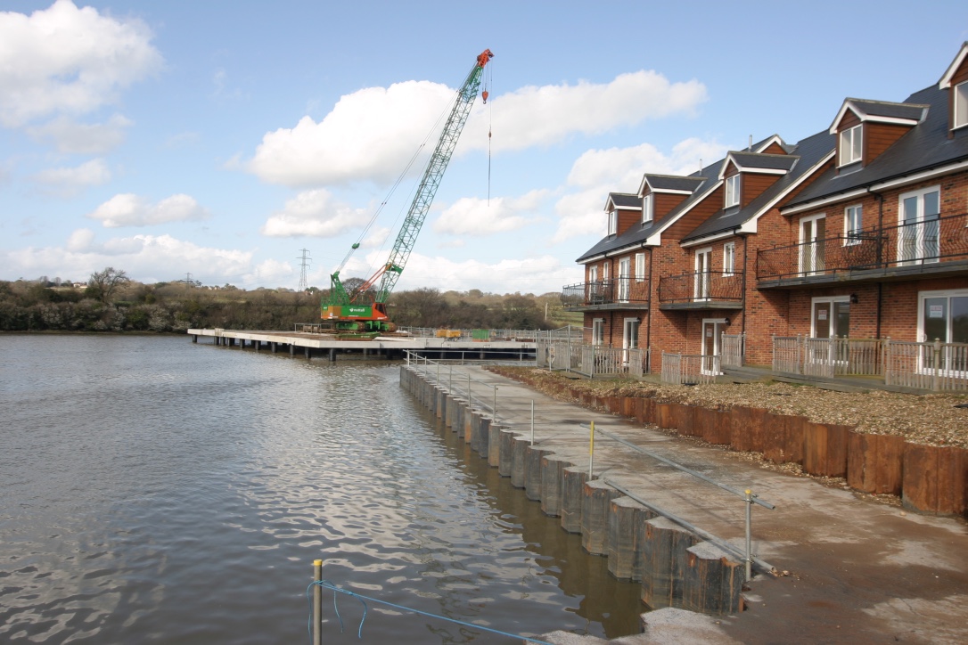 This project involved dredging the existing marina to give additional depth and 60 berths. Sheet piling to protect the existing houses adjacent to the water. Foundations for some 18 houses on land and the building out of a platform over the water to support a further 30 houses and service road. In addition, a boat lift was constructed and repairs were carried out to the existing lock.