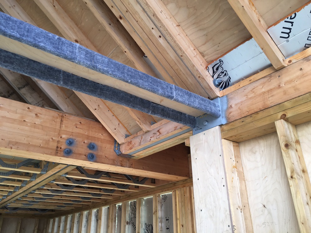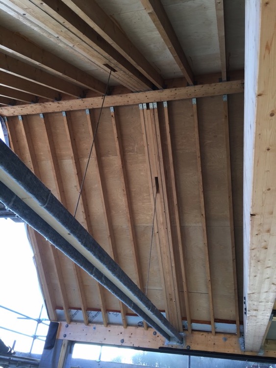 The roof and first floor is in timber but the large clear spans and lack of convenient tying and support means that there has been an unusually high number of flitch beams used to achieve the required result.